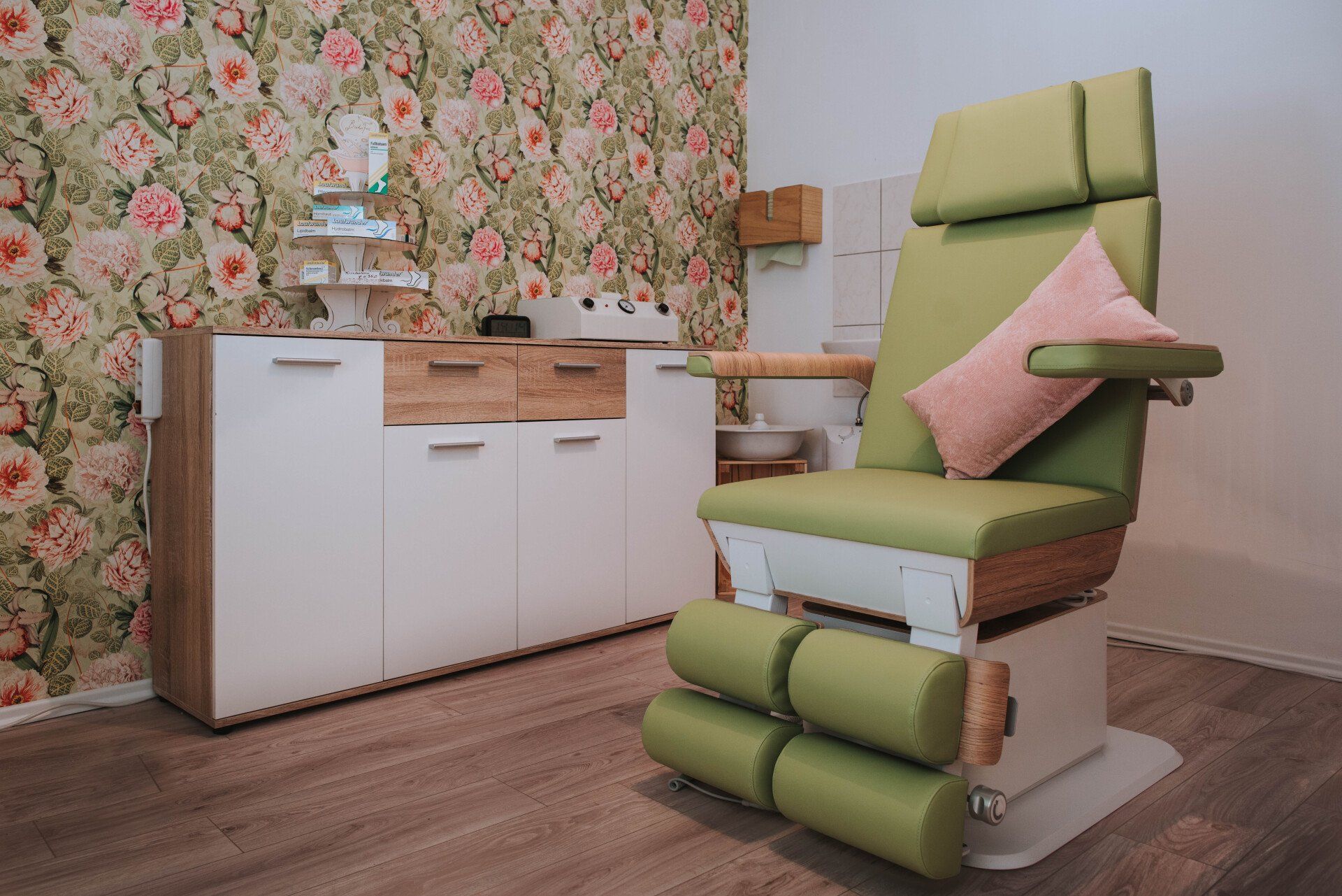 Die moderne Behandlungsliege MOON aus dem Hause Ruck sorgt dafür, dass Sie während Ihrer Fußpflege entspannt sitzen und Ihre kleine Auszeit in vollem Maße genießen können.